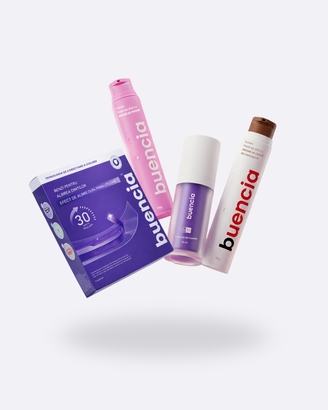 Benzi Buencia: gelul activ al benzilor conține un ingredient de albire în concentrație de 6%, similar cu cel utilizat în cabinetele stomatologice, dar sigur pentru smalțul dinților.